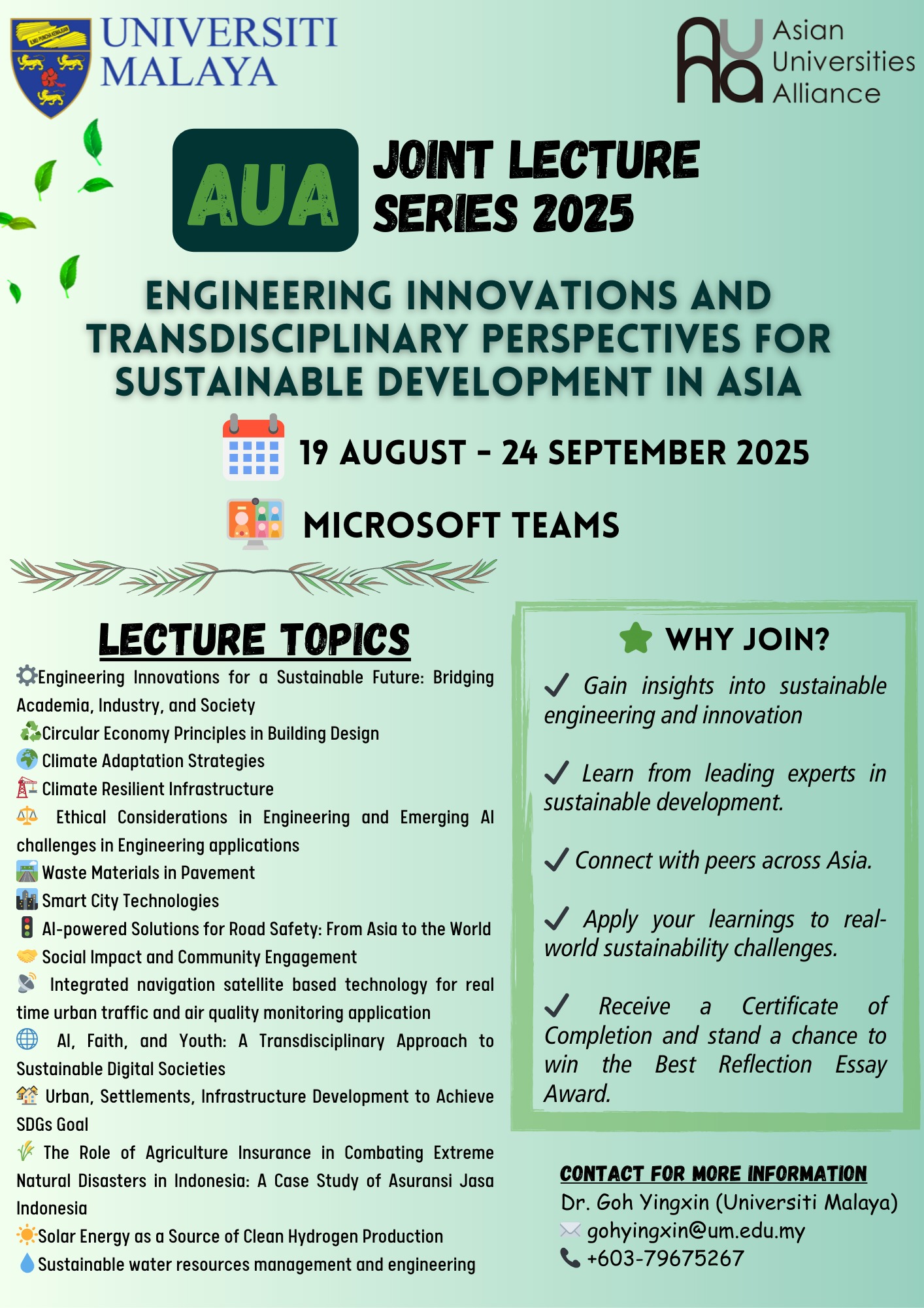 关闭Co-organized by Universiti Malaya and Asian Universities Alliance (AUA), the AUA Joint Lecture Series 2025 was ...